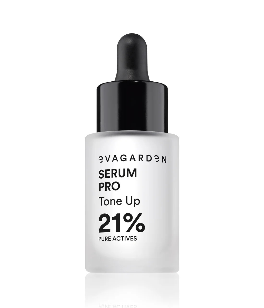 SERUM PRO TONEUP di EVAGARDEN è un siero viso per un trattamento rassodante d’urto, indicato per pelli mature particolarmente rilassate, con perdita di elasticità. Agisce in profondità per aiutare la pelle a tonificarsi, migliorandone l’elasticità, rimodellando l’ovale del viso e a rimanere giovane grazie a una formula avanzata con 19 principi attivi puri presenti in una percentuale straordinaria che ne potenzia l’efficacia: 21%. Trattamento a rapido assorbimento, utilizzabile anche prima del make-up.